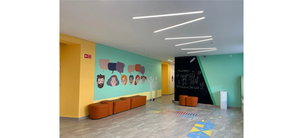 Интерьерное оформление центров цифрового образования, а так же поставка оборудования и мебели для робототехники.