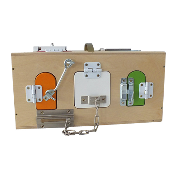 Необычная игрушка-сундучок познакомит малышей с основными видами запорных устройств.