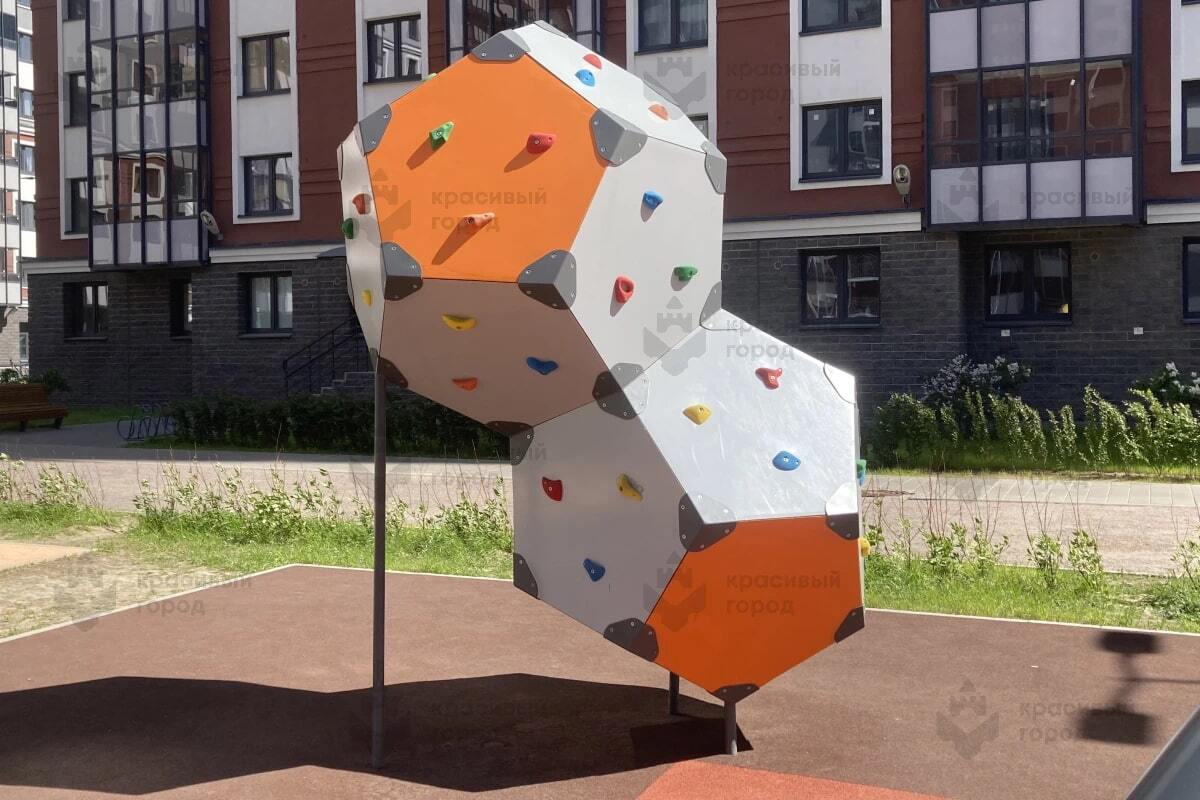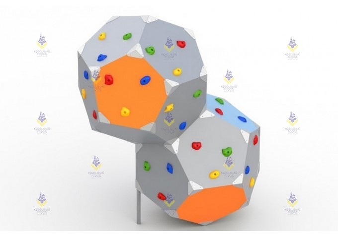Уличный спортивно-игровой комплекс «Альпинист 2» создан специально для того, чтобы дети могли получить нужную дозу физической активности во время активных игр. Модель представляет собой соединение двух многогранников, на каждом из которых располагаются отдельные упоры для рук и ног.