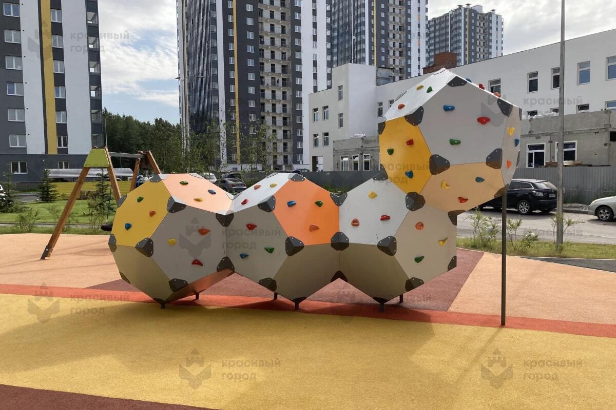 Спортивный комплекс смотрится красиво и необычно. Использование качественных, хорошо приспособленных к российскому климату материалов, делает его заметно более долговечным, устойчивым к погодным условиям. Также показательна и общая высокая прочность такой конструкции.
