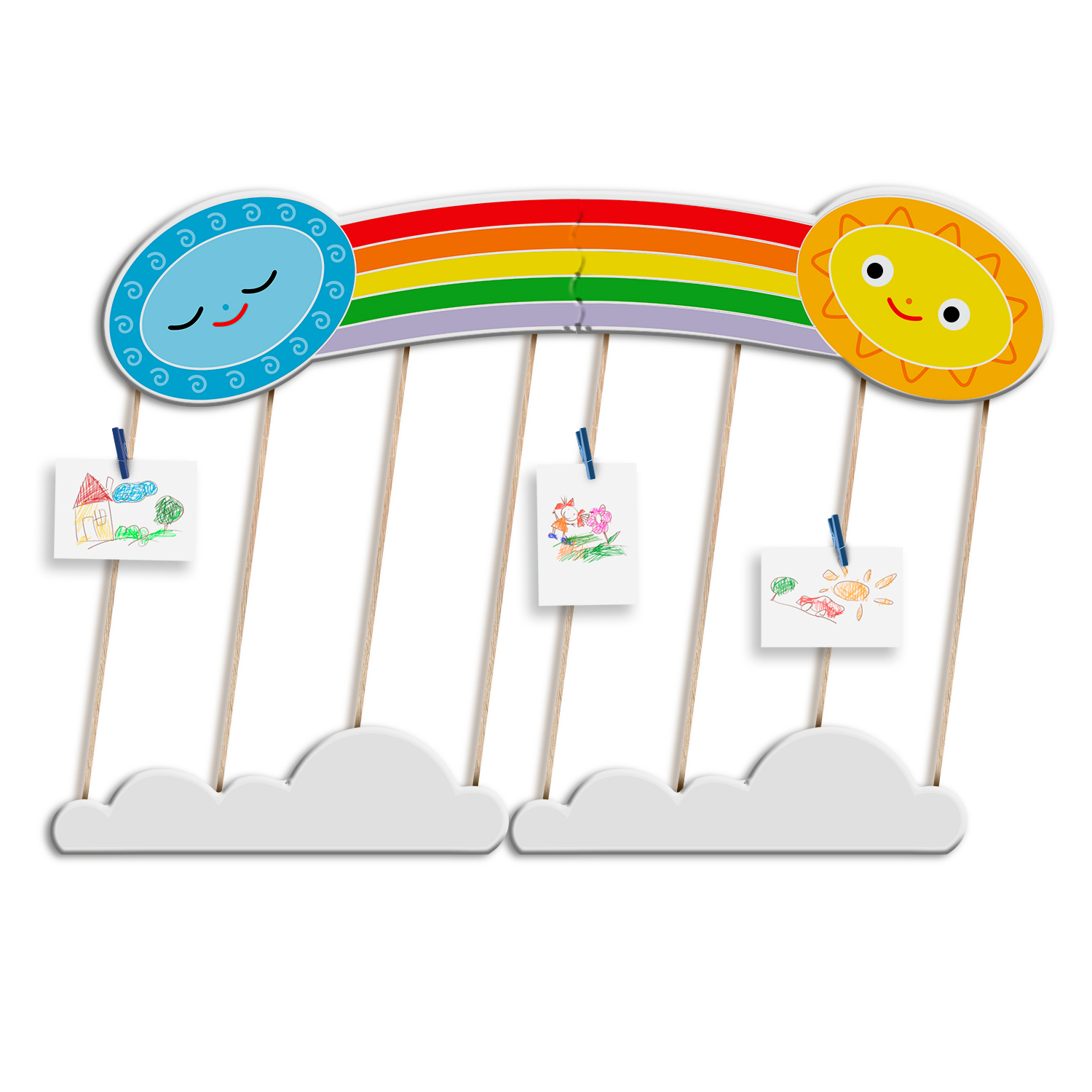 Система представляет собой отдельные декорации из высококачественного МДФ, окрашенного безопасной краской. Между декорациями натягивается специальный шнур, к которому можно прикрепить рисунки или другой демонстрационный материал с помощью зажимов (входят в комплект).