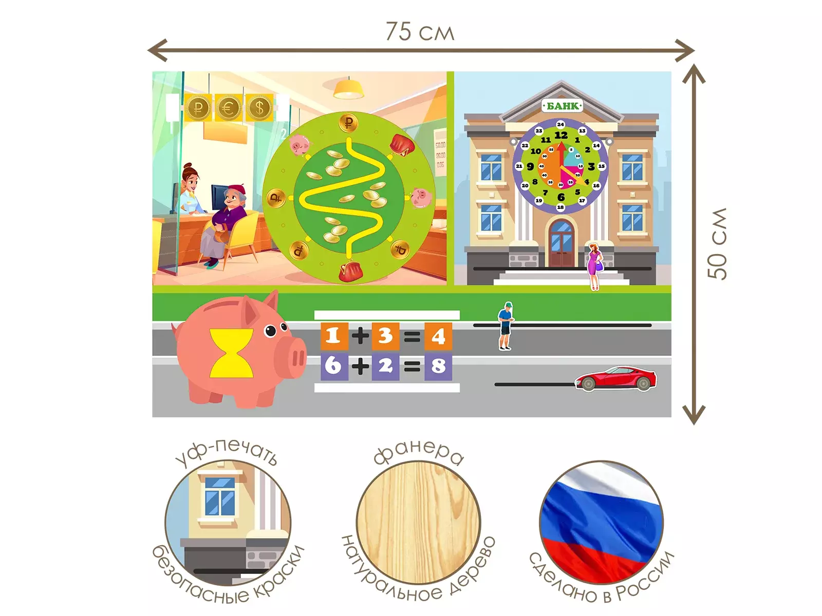 - Вращающийся лабиринт "Потоки денег" – развивает логику, внимание, через игру обучает принципам накопления и трат.