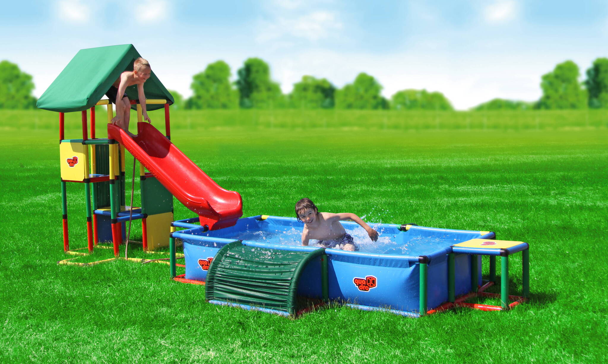 Горки QUADRO - великолепное качество и функциональность! Горки QUADRO бывают трех типов и так же могут включать в себя удлинительный модуль. Могут присоединяться к крупногабаритному конструктору и к бассейнам QUADRO!