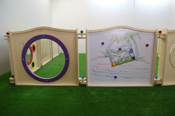 Двухсторонняя панель для игровых зон "Меловая и магнитно-маркерная доска" - предназначена для детей в возрасте до пяти лет, и идеально подходит для оснащения игровых и сенсорных комнат, детских садов, а также для обустройства домашней комнаты ребёнка. Изделие выполнено из высококачественных экологических материалов,с использованием лакокрасочных покрытий на водной основе, что обеспечивает высокую безопасность для детей младшего возраста. Одна сторона панели меловая, на ней можно писать и рисовать разноцветными мелками, а другая - магнитно-маркерная, её можно использовать также для фиксирования дидактических материалов.