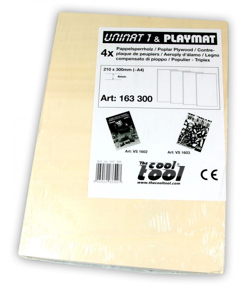 - Фанера 4 шт. по 4 мм. в формате А4 (210 мм х 297 мм)