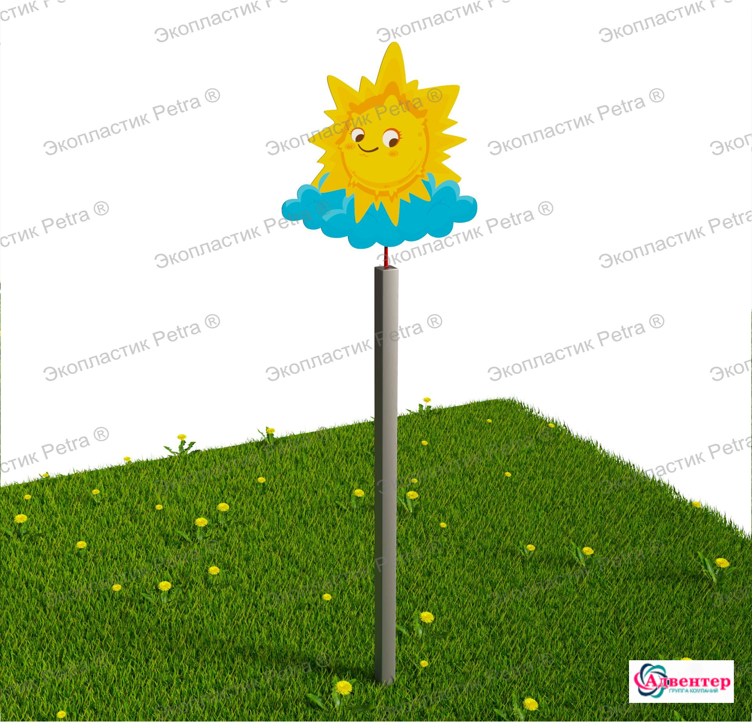 Данный флюгер в виде солнышка служит для определения направления ветра. Красочную фигурку на игровой площадке видно с дальнего расстояния, как она вращается на ветру. Дети смогут определить, ветрено на улице или нет, даже глядя из окна своей группы.