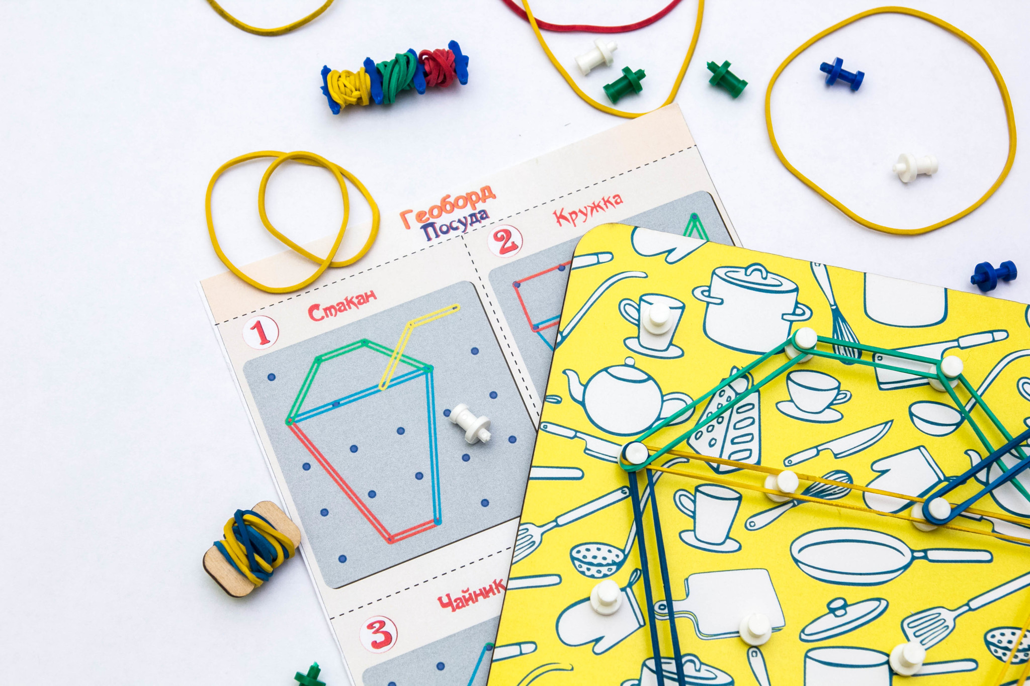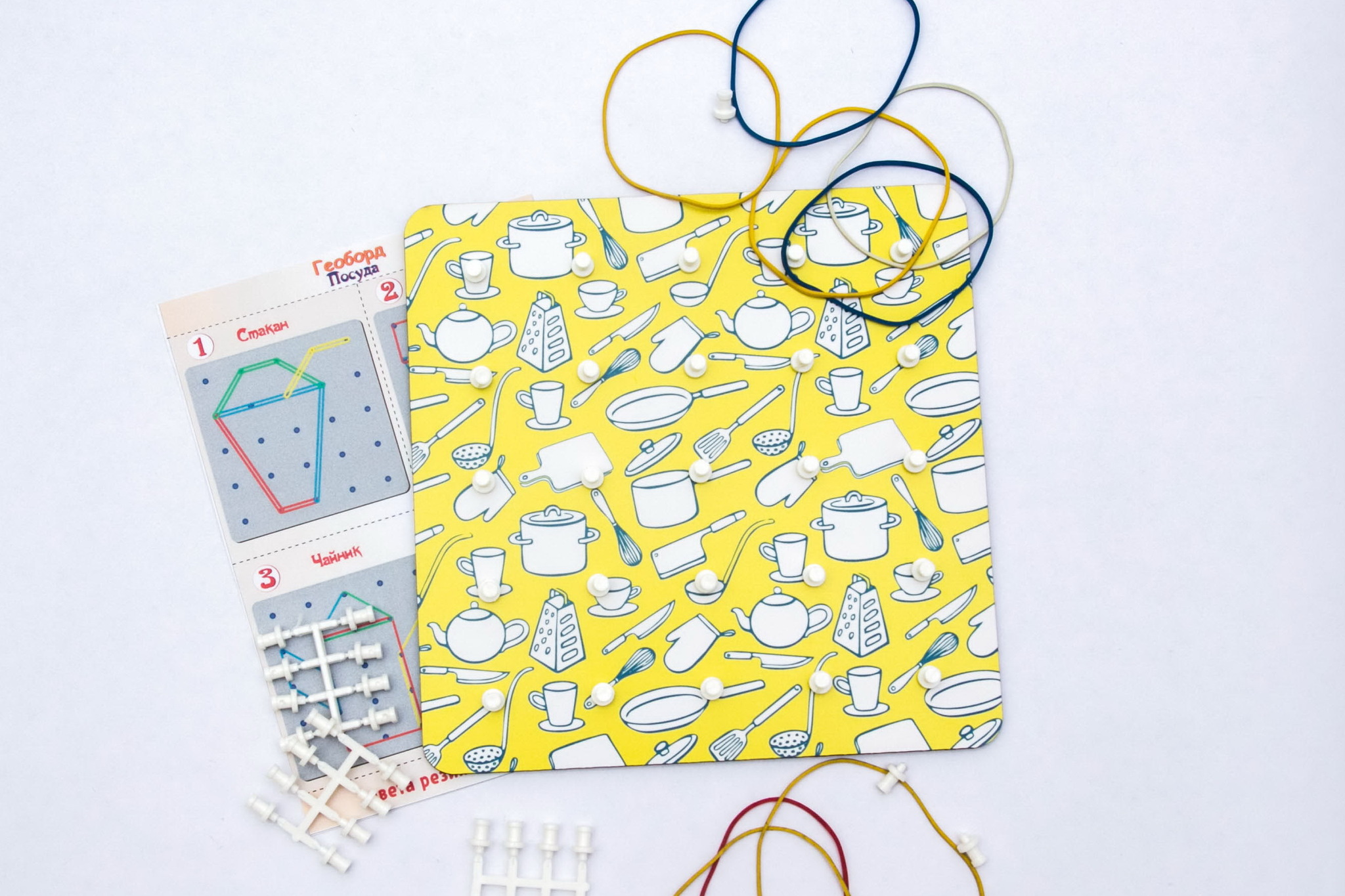 - Материал: геоборд, резинки разного цвета.