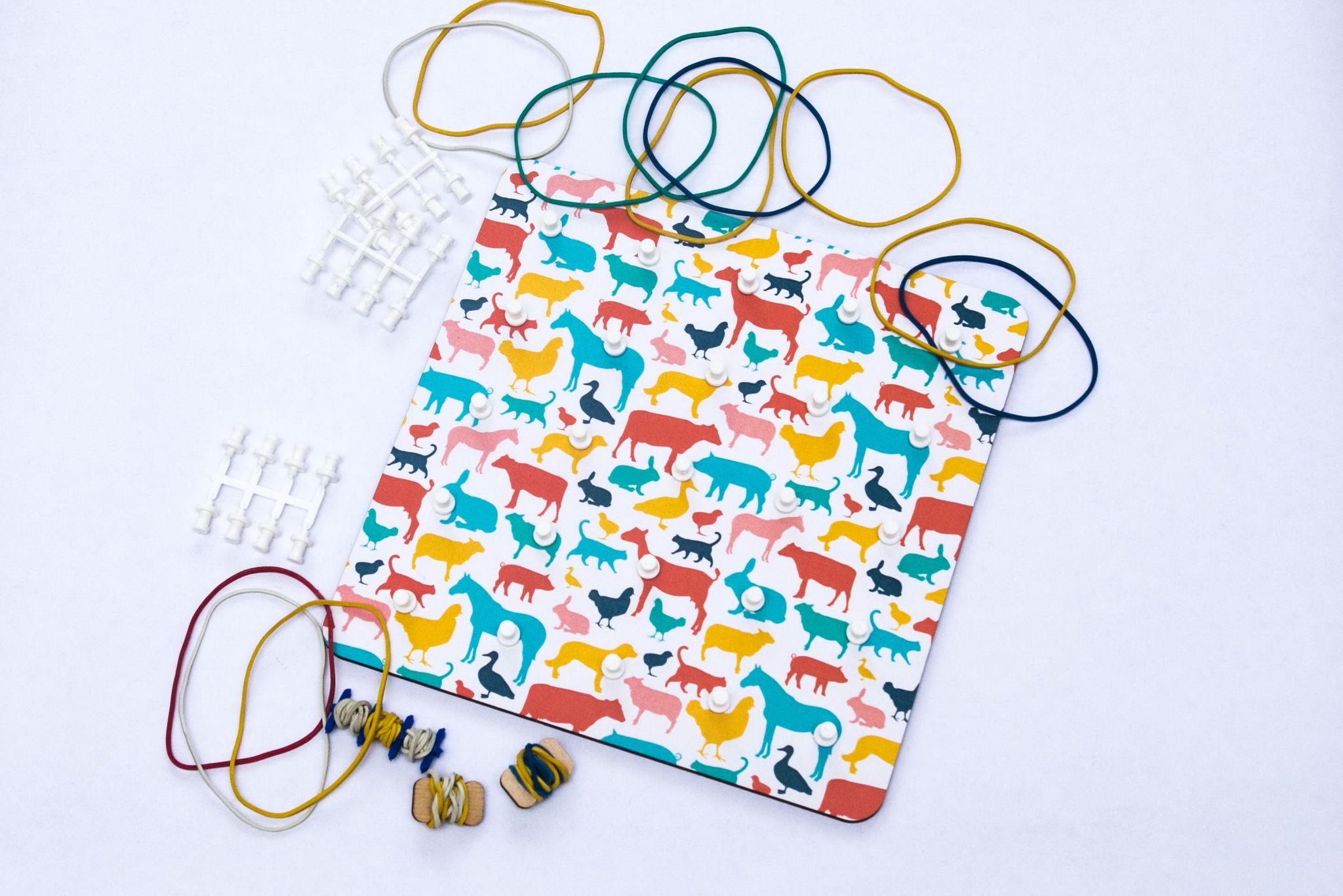 • Материал: геоборд, резинки разного размера и цвета.