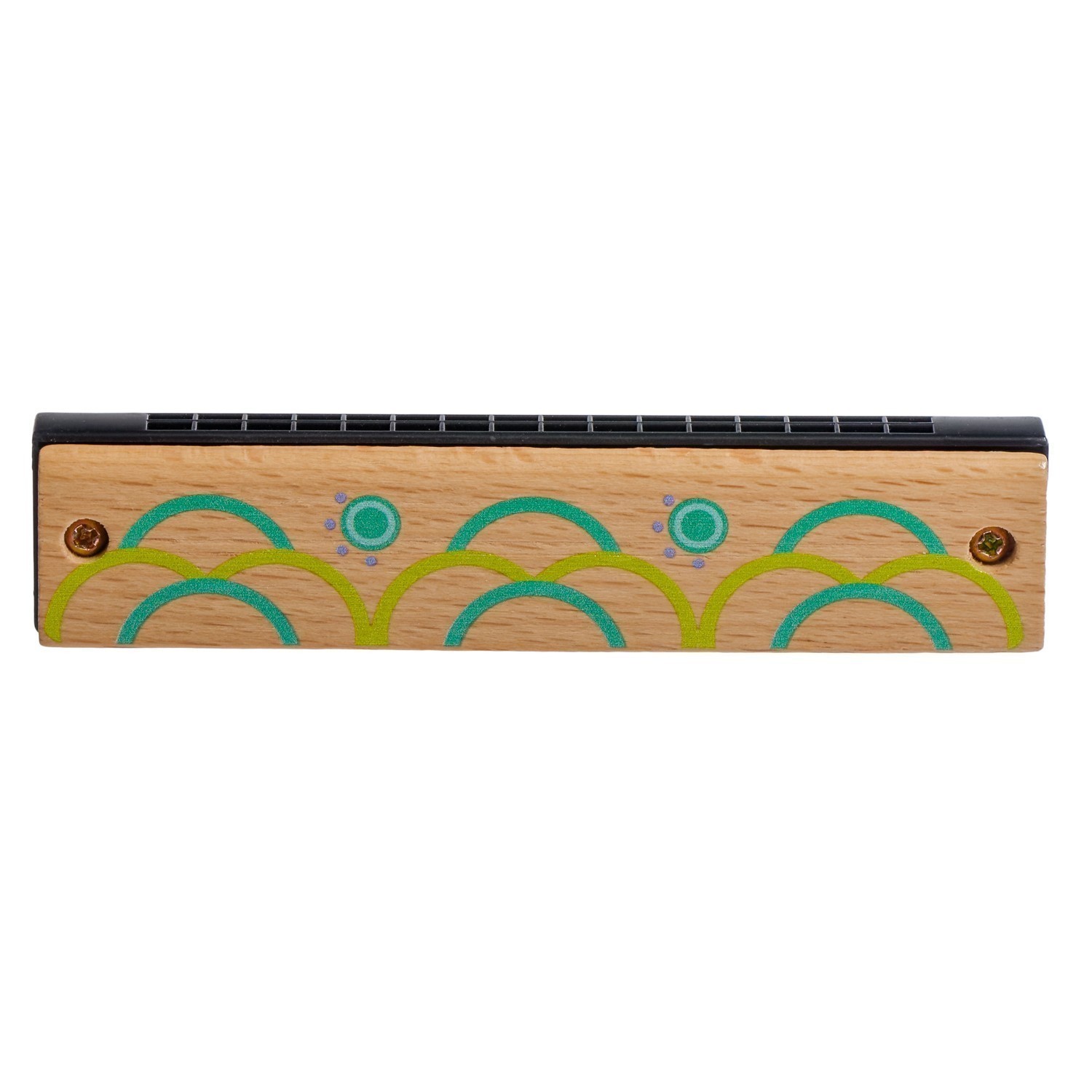 Корпус губной гармошки выполнен из бука — дорогой древесины с красивой текстурой. Рисунок нанесен методом термопереноса и покрыт безвредным лаком. Ребенок не сможет поцарапать его ногтями.