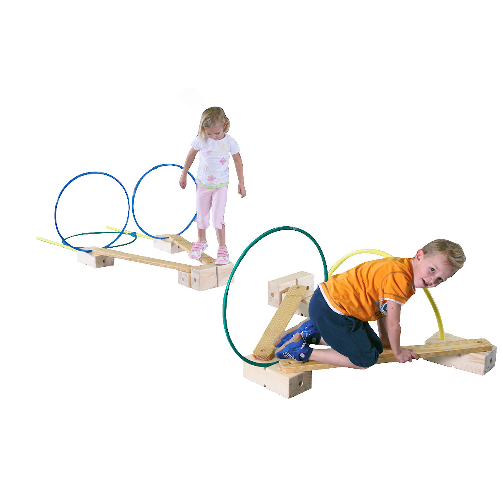 При балансировании развивается кординация, а сам процесс создания гимнастичнеского комплекса из балансировочных досок длиной 1,2 м, обручей и палок способствует развитию равновесия.