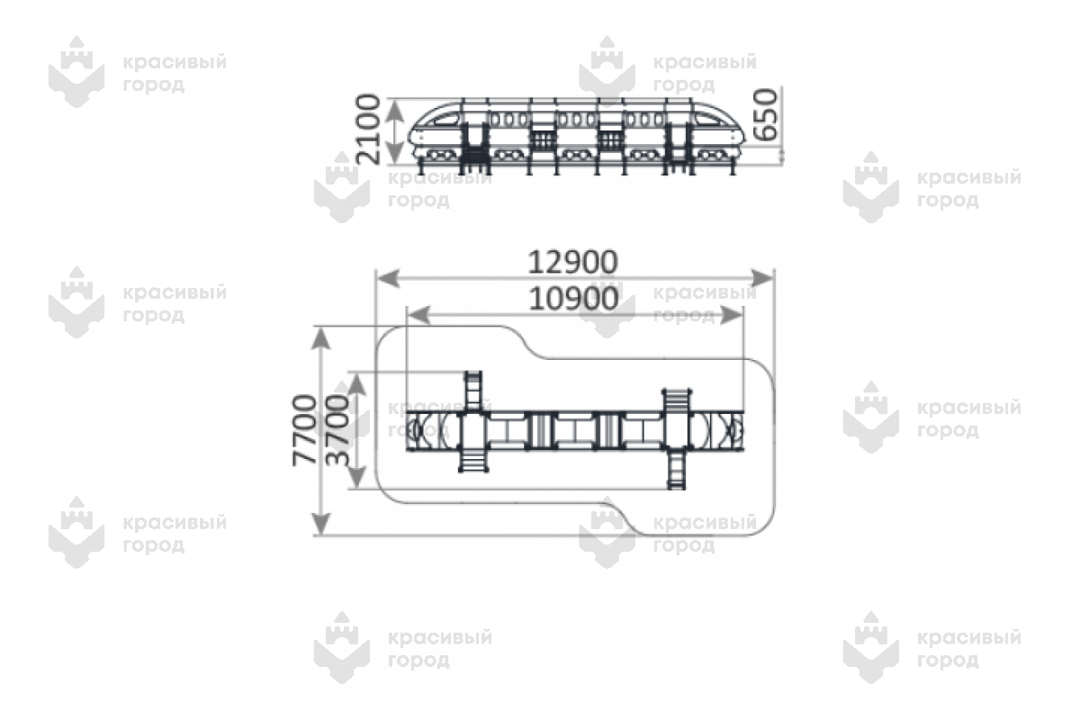 Игровой комплекс предназначен для малышей в возрасте от 3-х лет, а также подходит детям младшего школьного возраста. Помимо необычного оформления здесь имеется небольшая горка (h-600) и лестница с перилами. Все элементы безопасны и подходят для круглогодичного использования на открытых площадках во дворах, детских садах, парках, жилых комплексах.