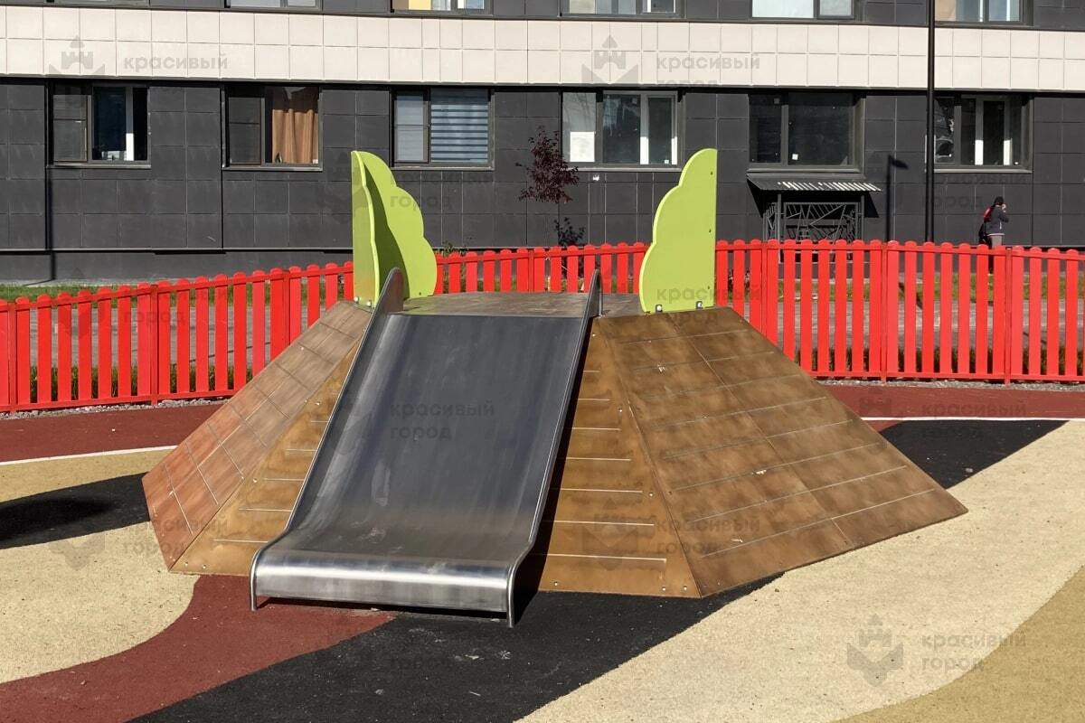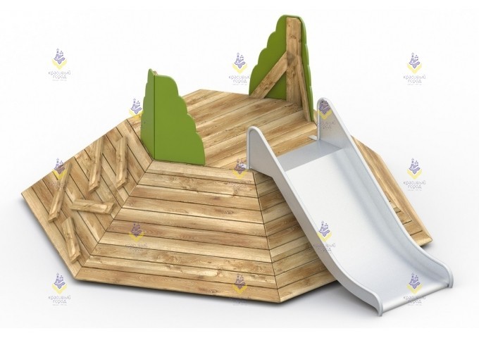При ее изготовлении применяются натуральные материалы, а сочетание цветов очень гармоничное. Сам холм изготавливается из сосны, кустики-перегородки – из фанеры, горка выполняется из нержавеющей стали.