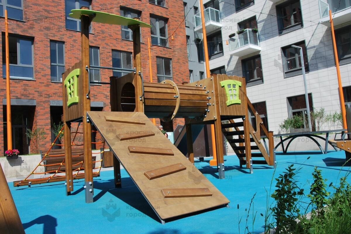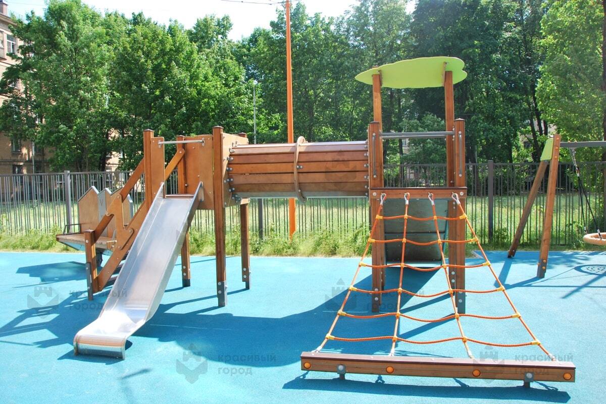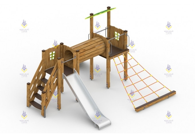 Игровой комплекс «Сафари» предназначен для детей в возрасте от 7 до 12 лет. Детская площадка включает в себя канатную сетку, горку, трубу для лазания – каждый ребенок сможет найти для себя что-то интересное.