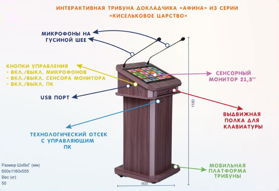 Интерактивная мультимедийная трибуна удобна для выступлений лекторов и докладчиков.