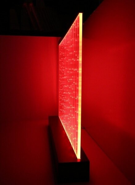 Воздушно-пузырьковая панель – это элемент сенсорной комнаты, который моментально привлекает к себе взгляды детей. Она сочетает в себе ряд полезных функций, в первую очередь это, конечно же, релаксация, организм отдыхает от всей внешней окружающей среды. Воздушные пузырьки, плавая внутри панели, стимулируют зрительный аппарат, а вибрация, ощущающаяся при прикосновении, развивает тактильные ощущения, Цвета плавно сменяют друг друга, освещая линии бегущего ручейка пузырьков. Всё это завораживает не только детей, но и взрослых. При помощи пульта или интерактивных клавиш, Вы можете выбрать понравившийся Вам режим освещения.