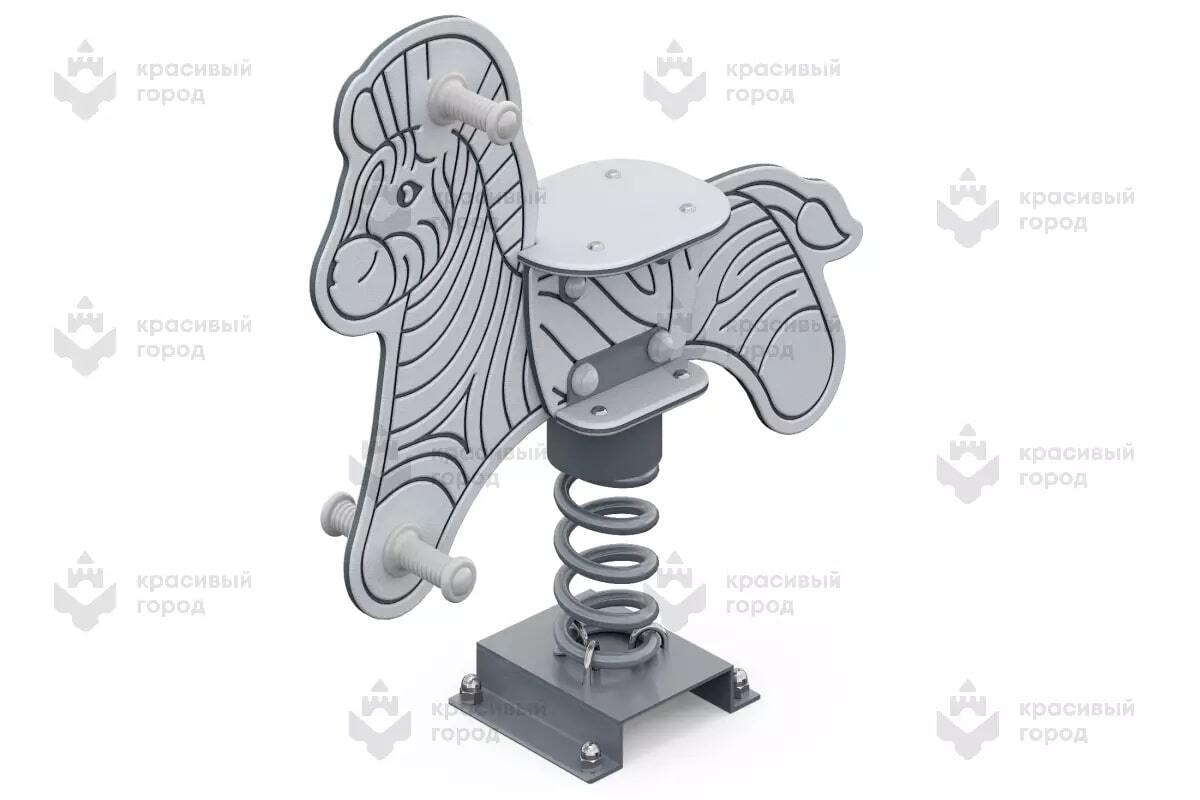 По своему строению – это сидение, выполненное в виде зебры и установлено на усиленной пружине. Оборудование предназначено для детей от 4 до 10 лет. Для ребенка предусмотрены специальные пластиковые ручки и упоры для ног. Во время игры он может крепко держаться и раскачиваться в разные стороны.