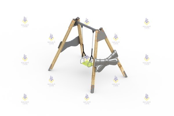 Конструкция отличается хорошим уровнем надежности и устойчивости. Горизонтальная перекладина стабильно выдерживает значительные нагрузки. Модель при этом рассчитана на возрастную группу от 3 до 12 лет.