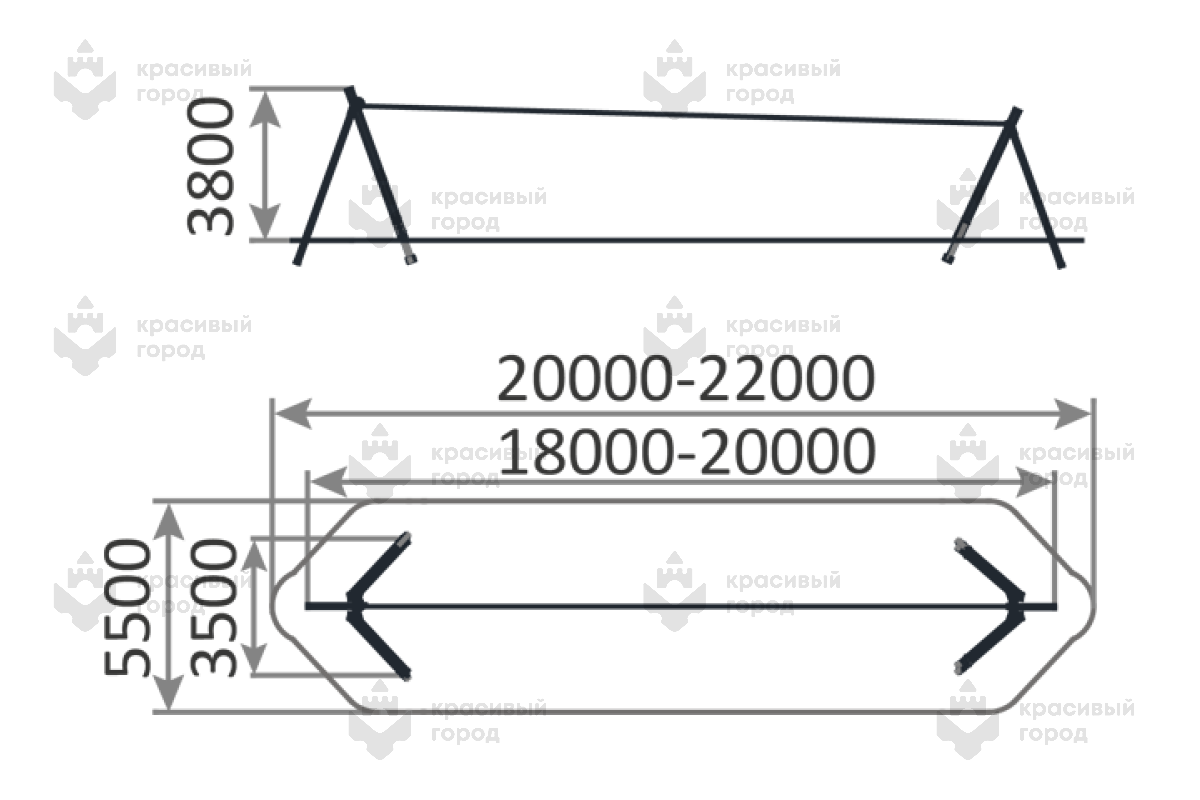 По вашему запросу длина канатной дороги может варьироваться от 18 до 20 метров, соответственно будет изменяться и габарит зоны безопасности оборудования.