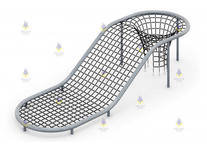 Оригинальная канатная конструкция «Каньон» рассчитана на большие пространства – её протяжённость составляет почти 12 метров. И это без учёта зоны безопасности, что должна откладываться от снаряда ещё на 2,5 метра. Необычный дизайн будет привлекать к себе детей с соседних дворов. Помимо привлекательного оформления она невероятно функциональна: создает простор для прыжков, лазания, активных игр в безопасной обстановке.