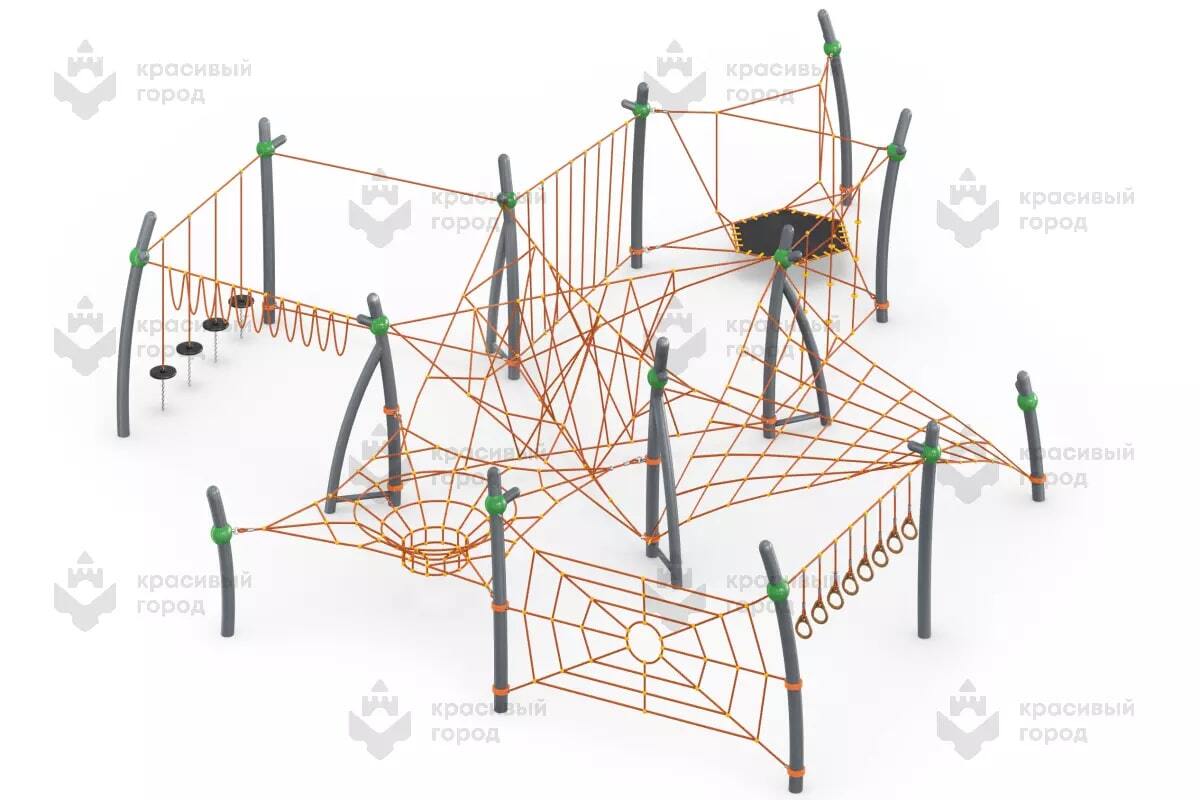 Канатный комплекс «Головоломка» — настоящий детский рай для улицы, позволяющий направить игровые активности в правильное русло: во время веселой игры включаются разные группы мышц, активно тренируются руки и ноги, стимулируется вестибулярный аппарат, а разнообразие сегментов для лазания (лианы, «водоворот», «паутинка») не даст заскучать.