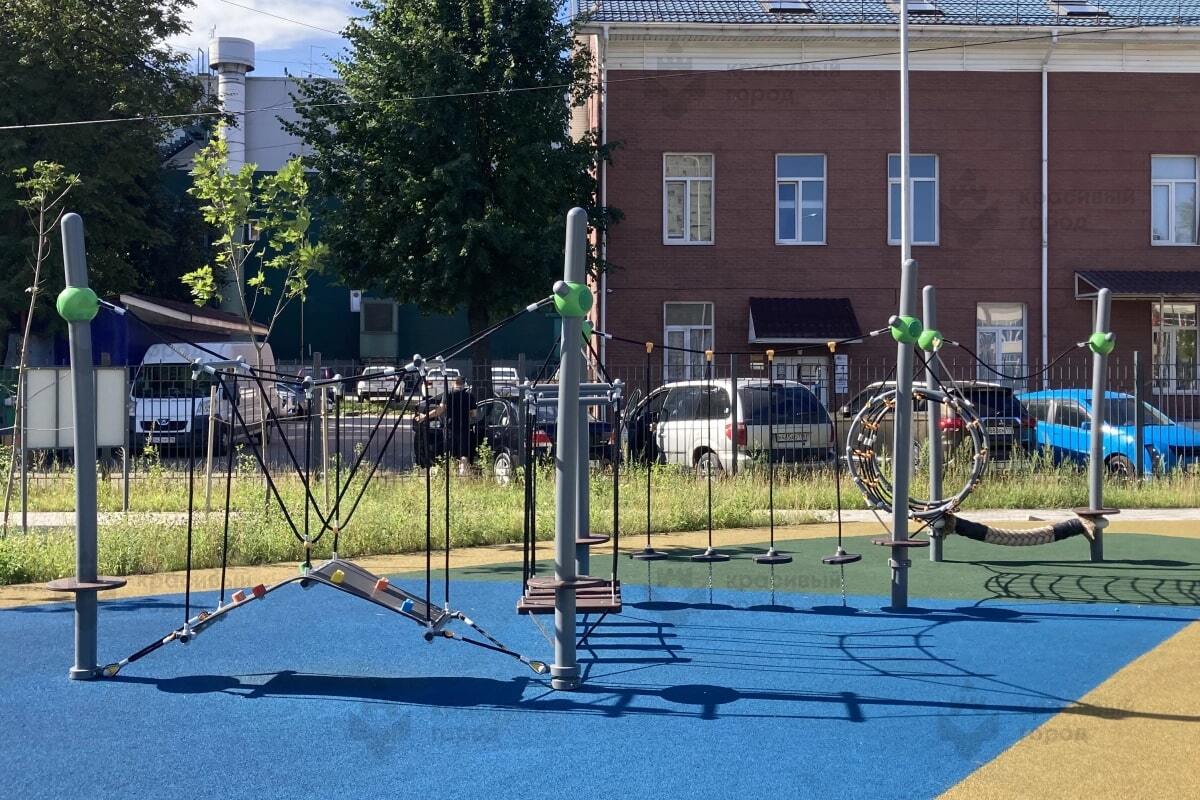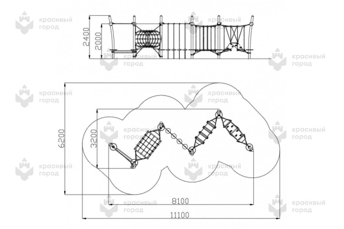 Оборудование предназначено для школьников от 6 до 12 лет. Изделие, изготовлено согласно ГОСТам и прошло всю необходимую сертификацию. Безопасность детей обеспечивает продуманная надежная конструкция из прочных деталей и армированного каната. Данный канатный комплекс отлично дополнит детскую площадку школы или территорию ЖК.