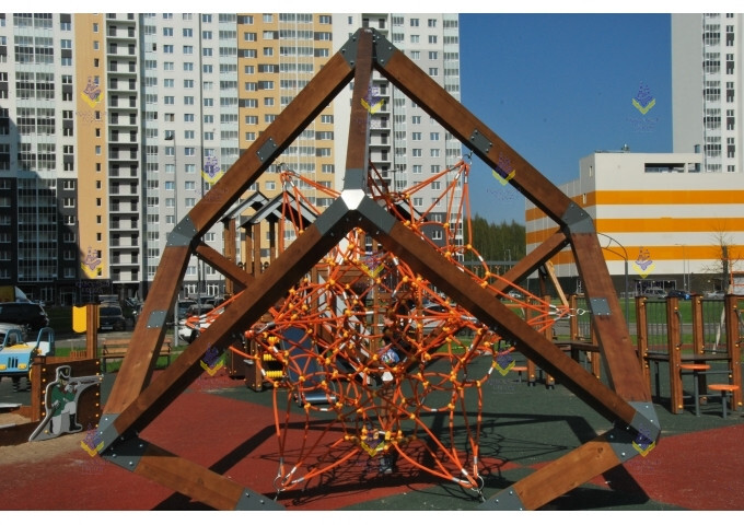 Канатный комплекс «Куб» – современный и продуманный элемент детской площадки, где дети смогут не только играть и проводить время с друзьями, но также заниматься спортом, развивать ловкость, выносливость, тренировать мышцы спины и формировать здоровую осанку. Оборудование включает в себя европейский шестипрядный армированный канат со стальным сердечником и силовой крепеж из оцинкованной стали.