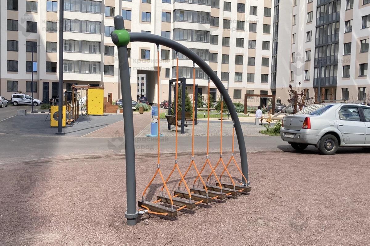 Уличное спортивное оборудование «Канатный переход» имеет разные цветовые решения и подойдет для детской площадки во дворе школы, жилого комплекса, гостиницы, а также базы отдыха, торгово-развлекательных центров и парков – любой общественной зоны отдыха, где требуется стильное, функциональное и безопасное оборудование для детей.