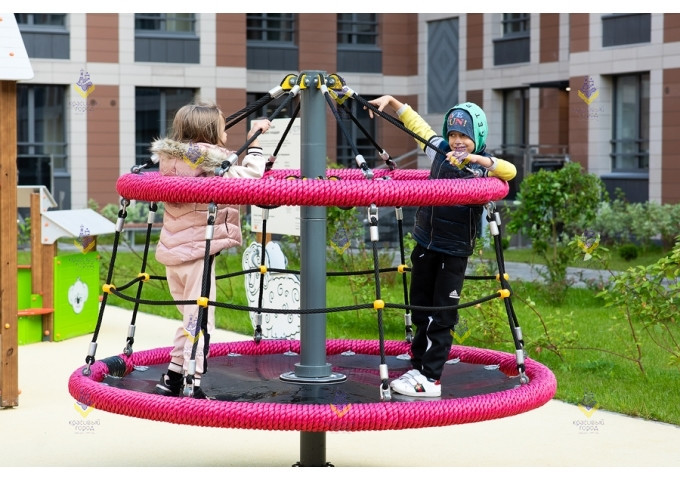 Канатная карусель сразу привлекает внимание детей. Она подойдет для детской площадки, парка и игровых зон, которые размещаются в других местах.