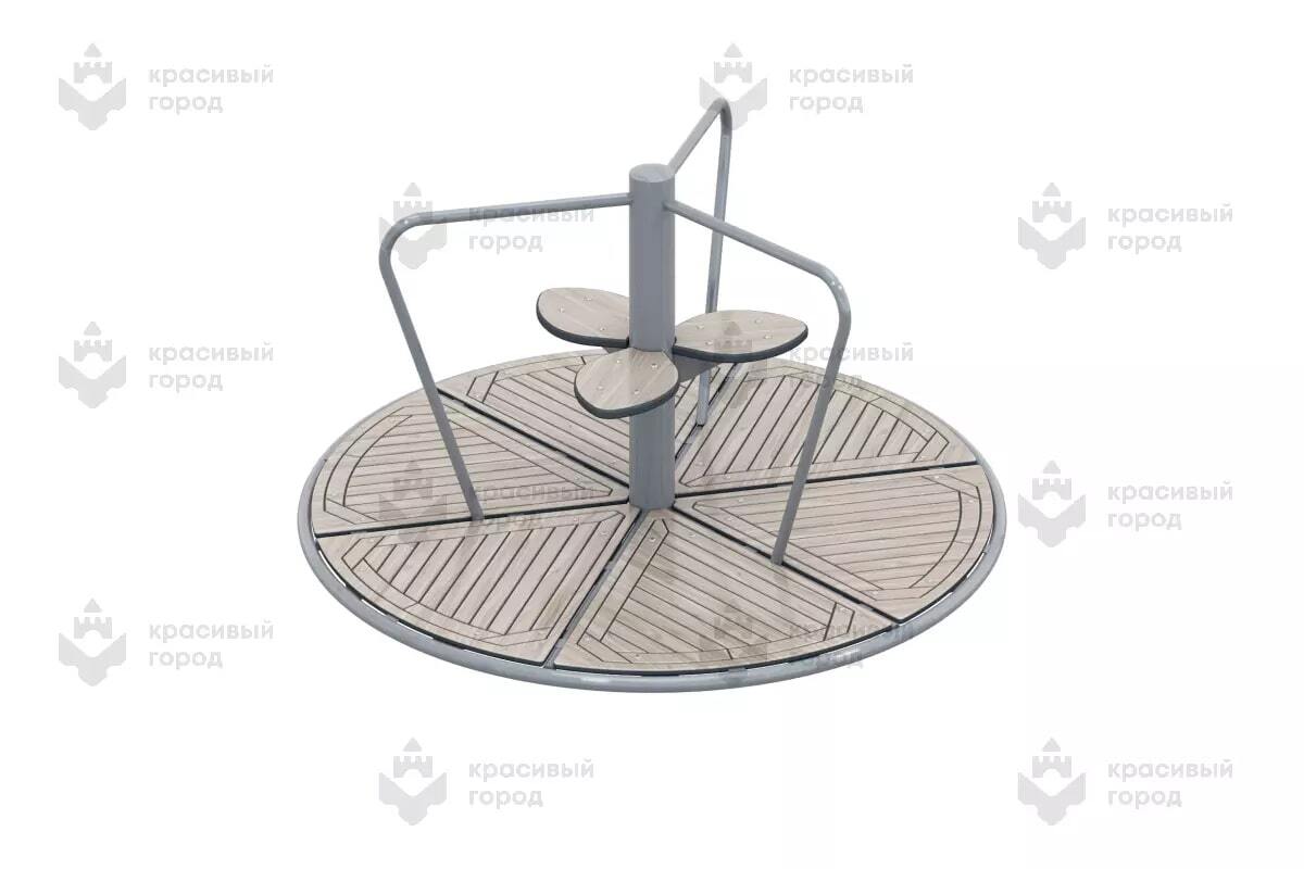 Карусель рассчитана на три места. При этом дети сами раскручивают ее, могут стоять или сидеть на специальных стульчиках.