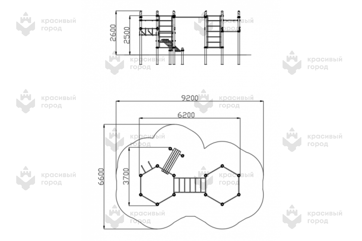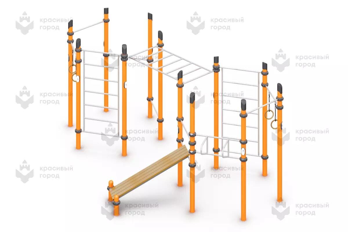 Турники, размещённые на разных уровнях. Шведские стенки. Гимнастические кольца. Рукоход. Скамья для пресса. Упоры для рук. Такое разнообразие представленных снарядов делает возможной полноценную тренировку сразу нескольких человек. При этом можно прорабатывать самые разные группы мышц – пресс, руки, спину, грудь. Обратите внимание, что все перекладины изготовлены из нержавеющей стали, что не только красиво смотрится, но является очень долговечным вариантом использования воркаута.