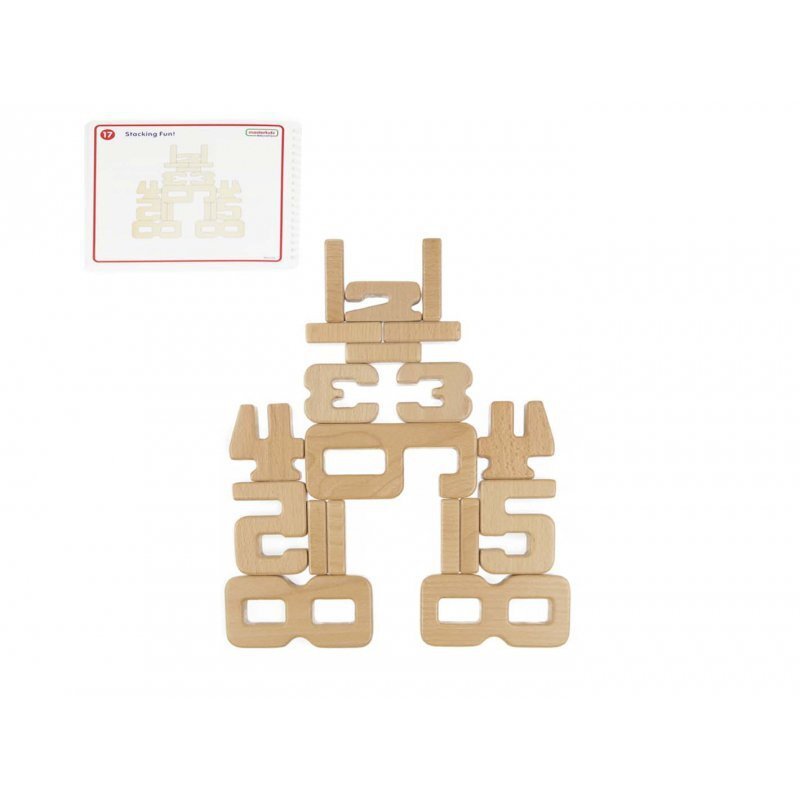 Набор состоит из 36 деревянных элементов, изображающих числа от 1 до 10. Высота каждой цифры пропорциональна соответствующему количеству чисел. Например, высота цифры 5 равна высоте 5 цифр 1, сложенных вместе. В нижней части каждой цифры имеются обозначения в виде точек и цифр.