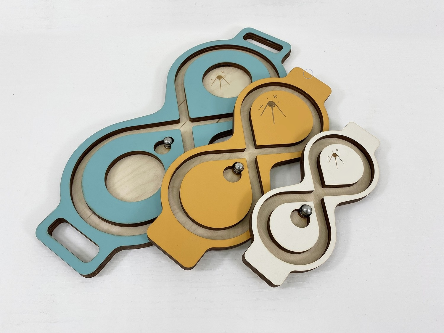 Балансир-лабиринт для развития мозга и снятия эмоционального напряжения. Представляет собой положенную набок восьмёрку с металлическим шариком, который можно катать, наклоняя лабиринт в разные стороны.