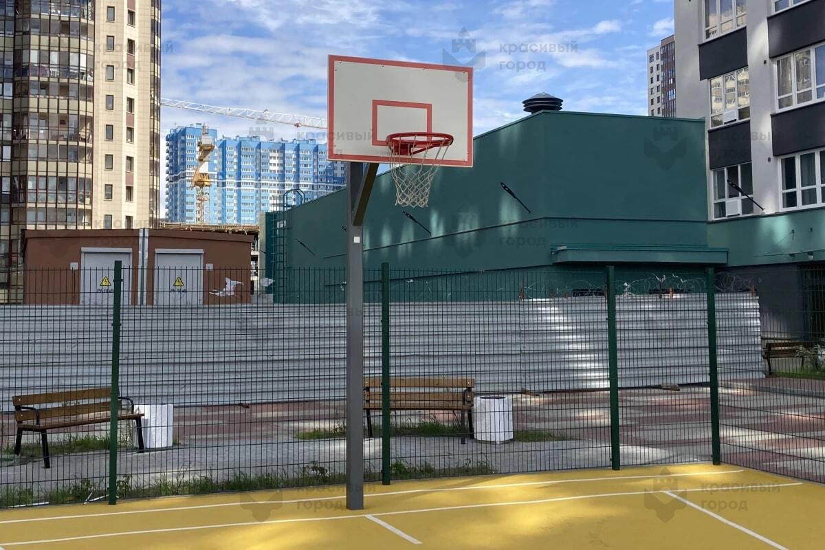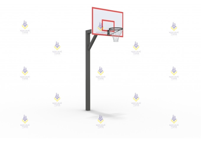 В конструкции уже предусмотрено все что нужно для игры. Это щит с разметкой, кольцо и сетка. Все устанавливается на прочную металлическую опору.