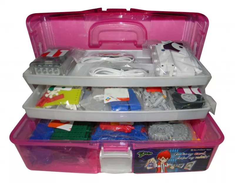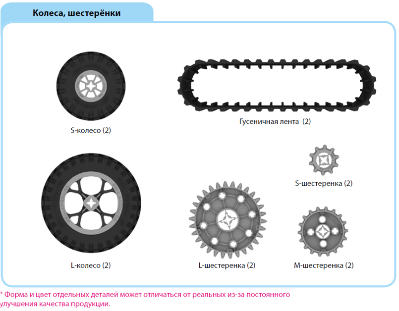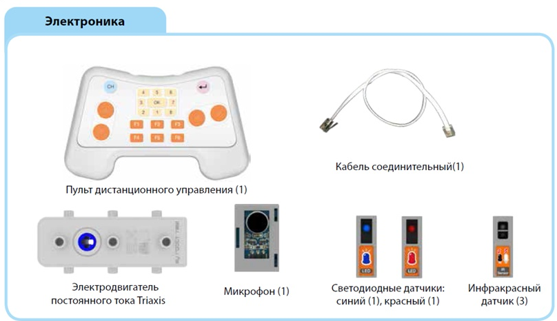 В составе набора имеются пластиковые детали, валы, шестерёнки и набор датчиков за исключением платы и картридера, которые используются из набора MRT Brain A