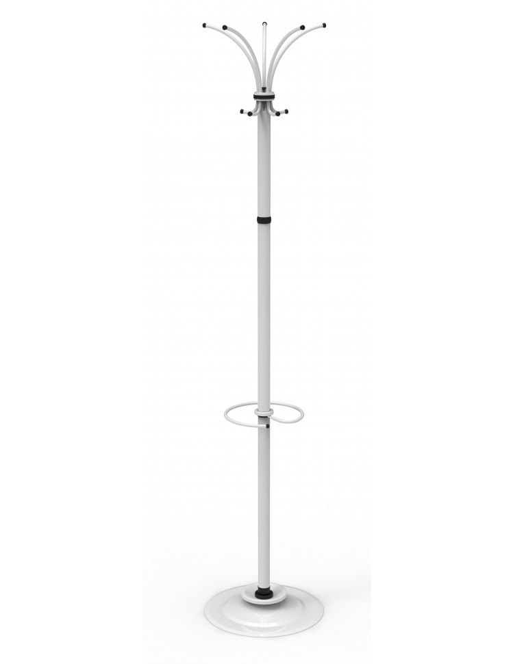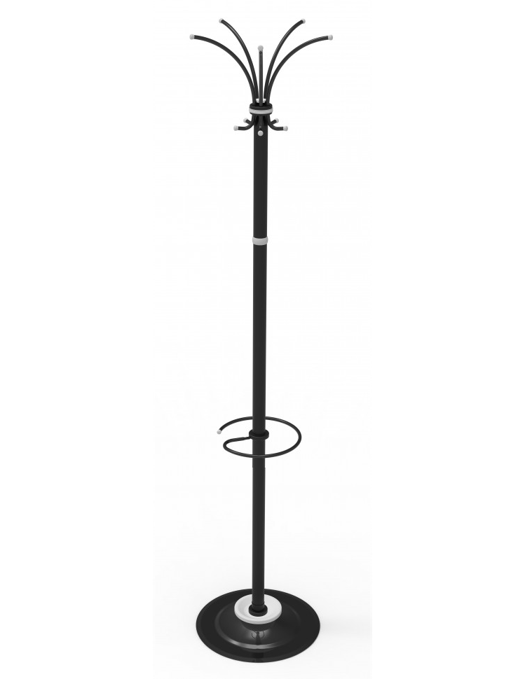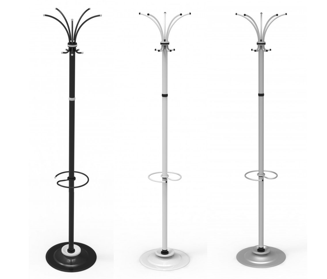 Вешалка напольная выполнена из оцинкованной стали с полимерным покрытием, снабжена подставкой и держателем для зонтов Идеально вписывается интерьер современного офиса.