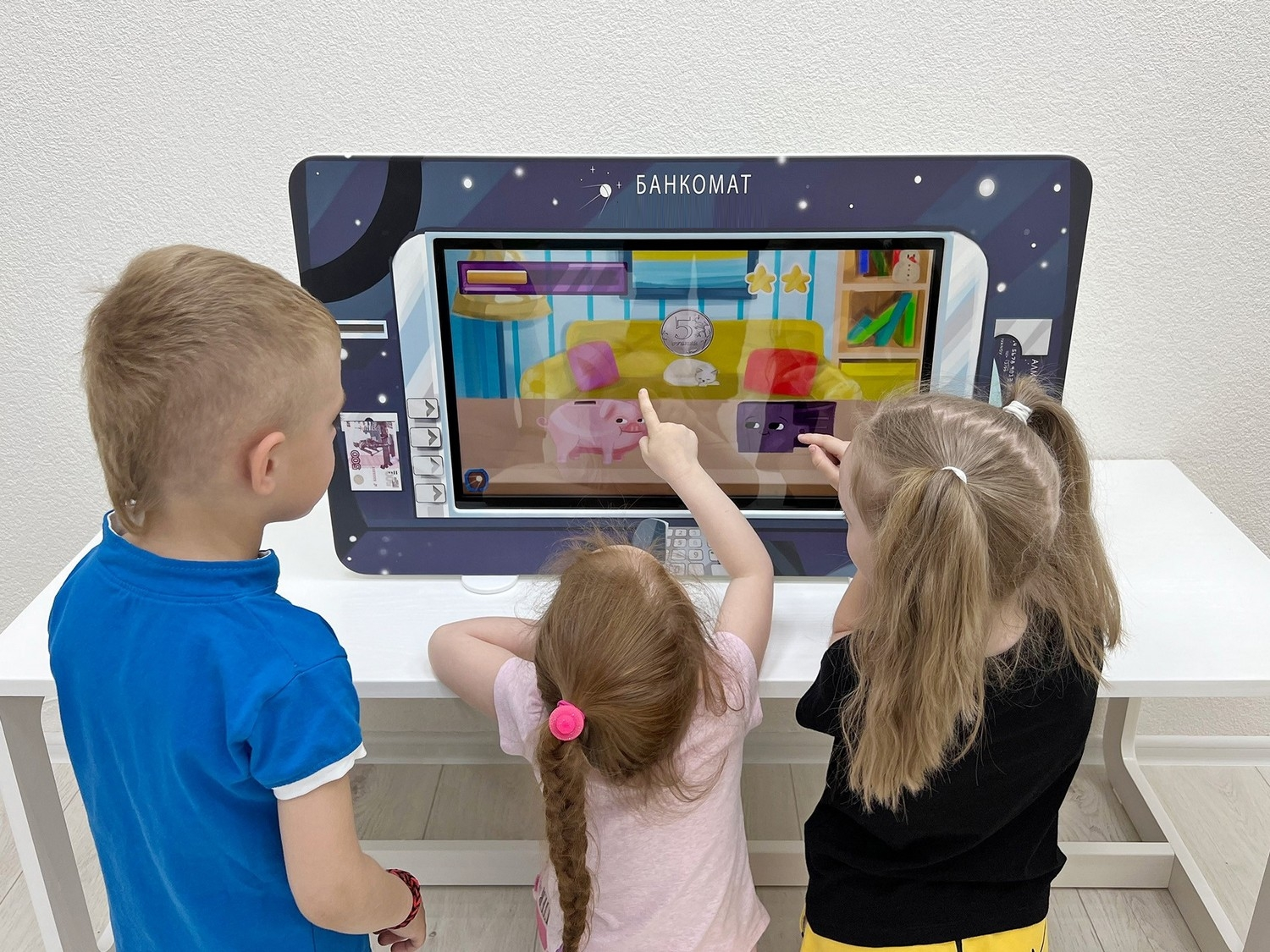 Сенсорная панель Банкомат: фирменная сенсорная панель «Банкомат» является незаменимым помощником в прохождении занятий. Банкомат поддерживает групповую работу, педагог сможет задействовать как можно больше детей.