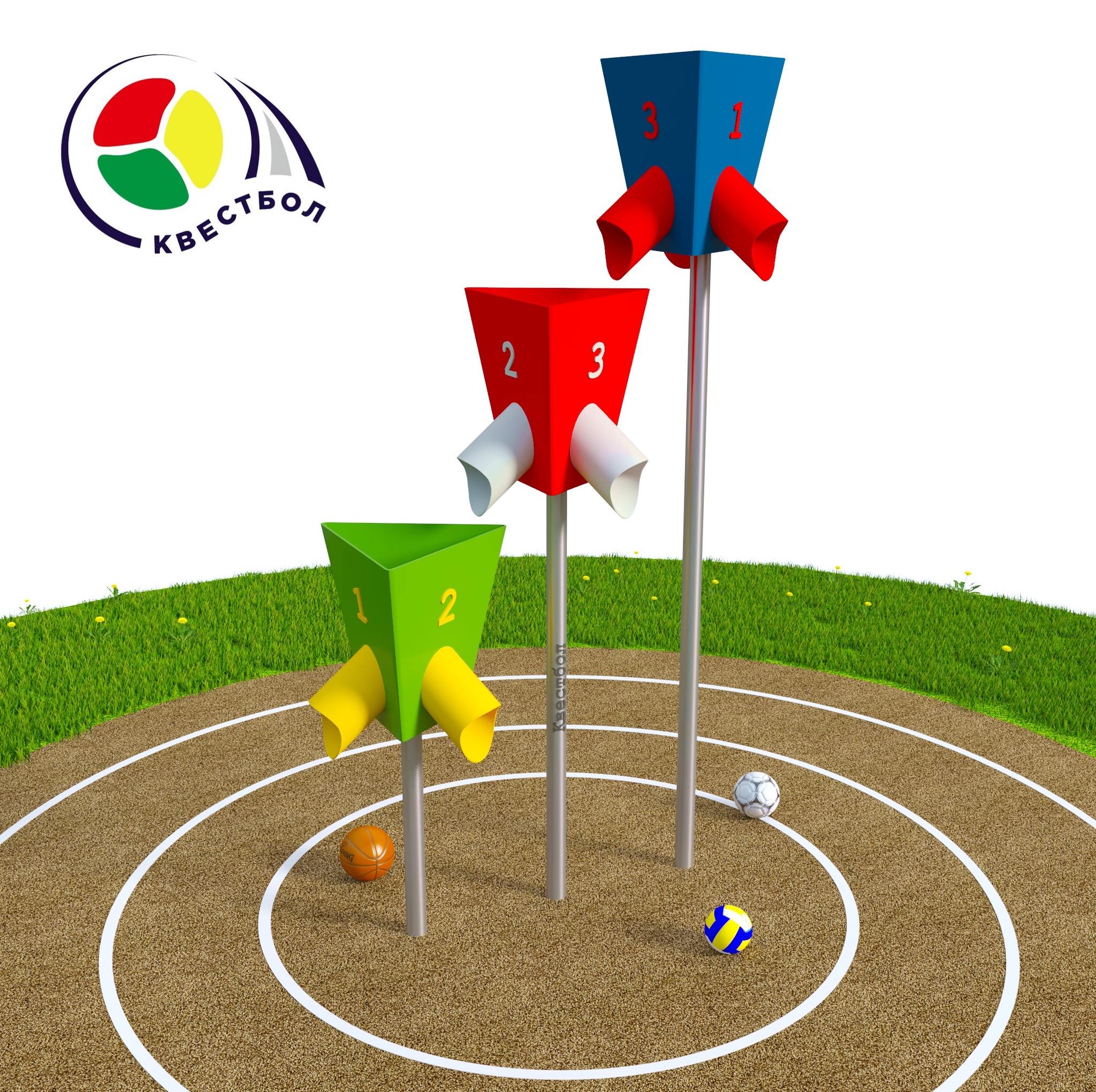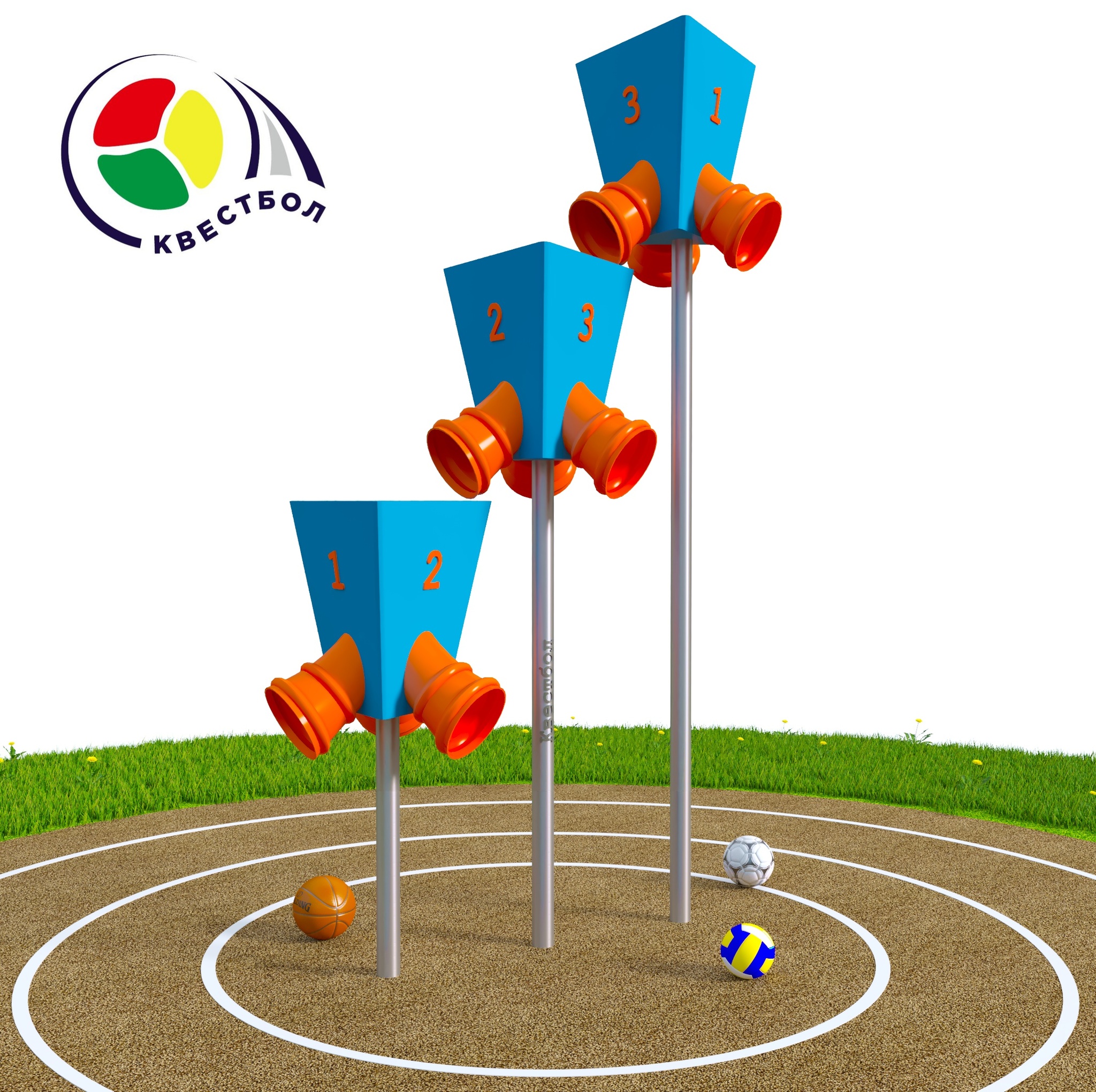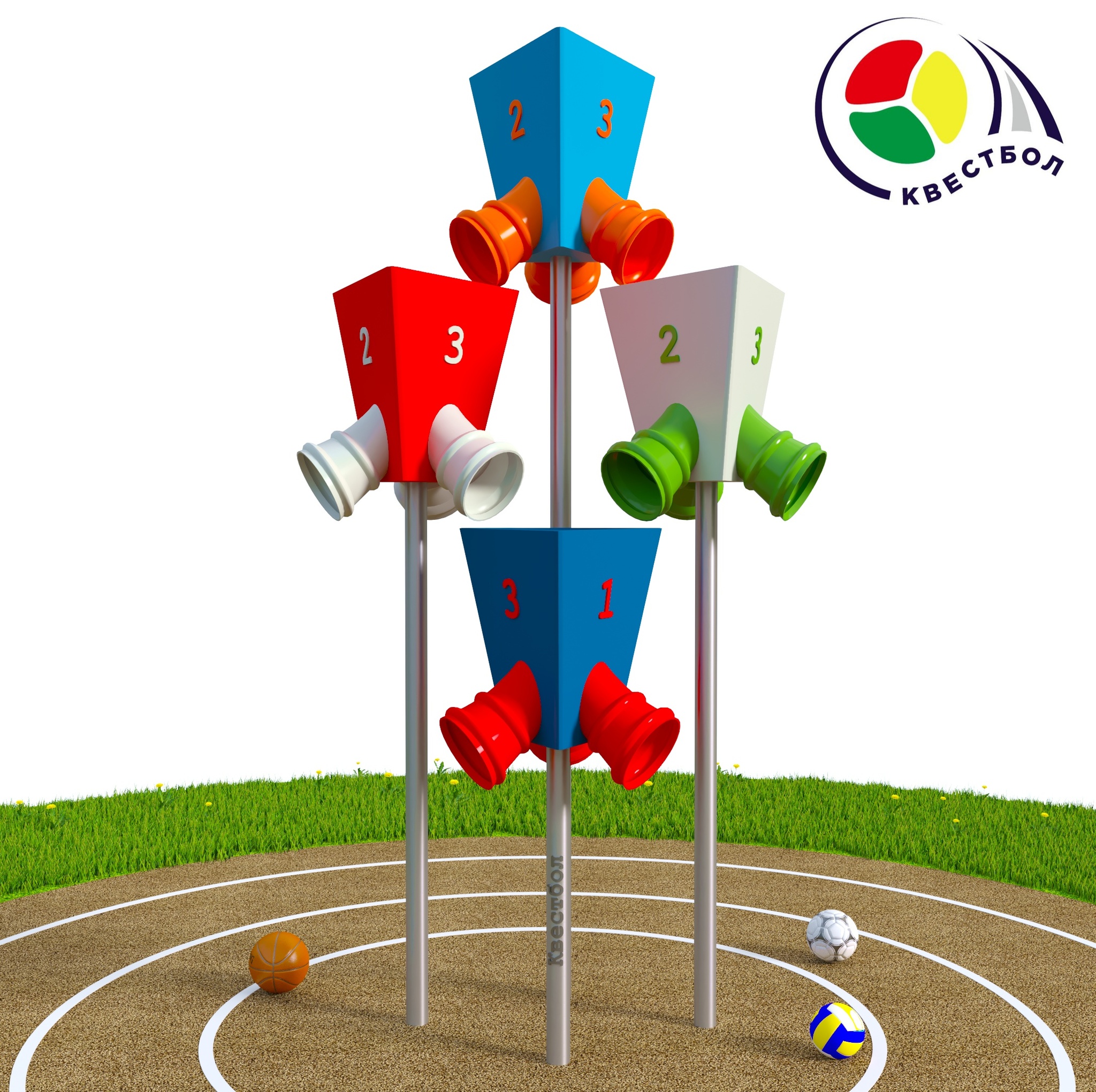 Каждый квестбол имеет свою высоту, что позволяет одновременно участвовать большому количеству игроков разного возраста и разного роста.