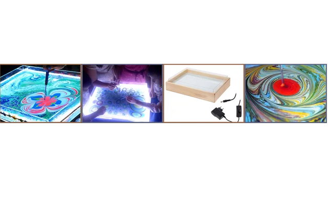 Аква-анимация (Эбру) - техника рисования на водном растворе специальными красками. В дальнейшем рисунок можно перенести на лист бумаги. В качестве поддона для воды можно использовать любую подходящую посуду. Но истинная красота проявляется, когда вода подсвечивается, а если подсветка может менять цвета, открывается дополнительный простор для фантазии.