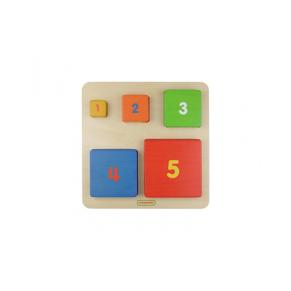 Пособие представляет собой панель с набором из 5 блоков различных по размеру, цвету, цифре и соответствующему количеству точек.
