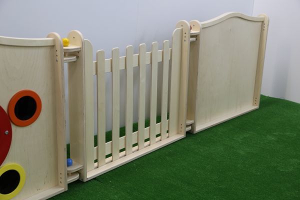 Панель для игровых зон "Стена" - предназначена для детей в возрасте до пяти лет, и идеально подходит для оснащения игровых и сенсорных комнат, детских садов, а также для обустройства домашней комнаты ребёнка. Изделие выполнено из высококачественных экологических материалов,с использованием лакокрасочных покрытий на водной основе, что обеспечивает высокую безопасность для детей младшего возраста. Панель «Стена» используется как ограждение для игровой зоны.