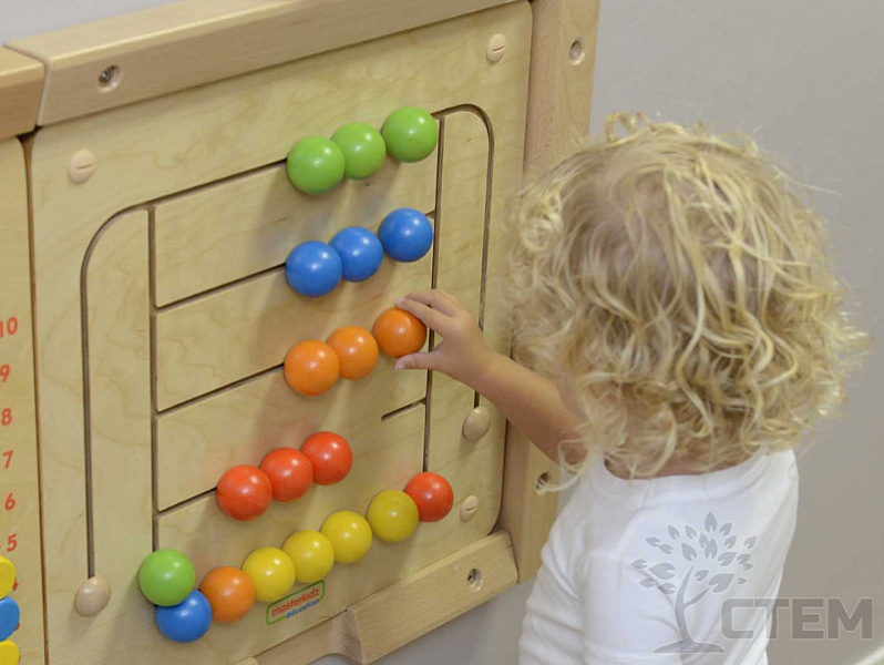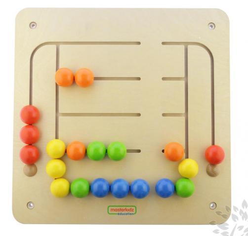 Ребенок, передвигая шарики по лабиринту, может сортировать их по цветам или выстраивать из них определенные цветовые последовательности. Может задействовать как одну руку, так и две руки одновременною.