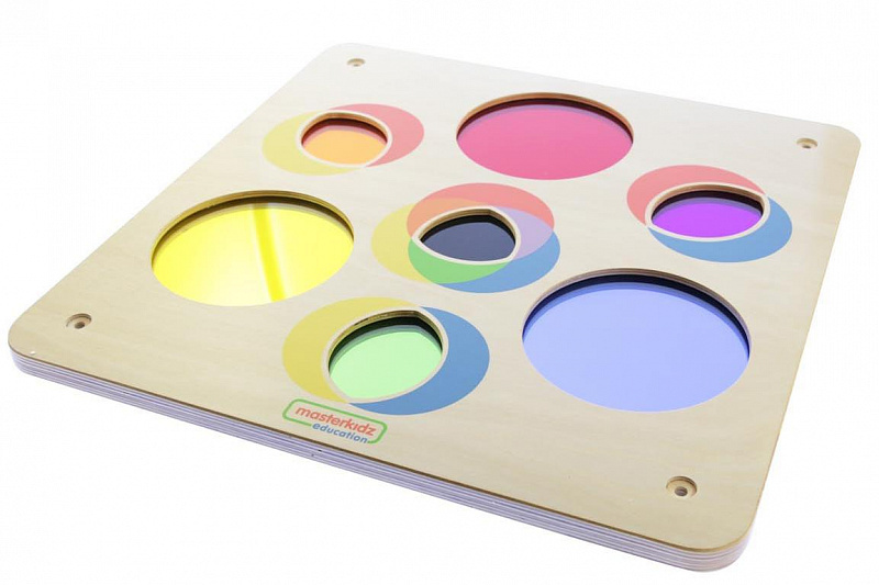 Эта красивая панель для смешивания цветов способствует обучению и изучению смешивания трех основных цветов: красного, синего и желтого. Панель может монтироваться на стену или использоваться с монтажной системой Masterkidz и отдельно с подставкой для рисования Masterkidz.