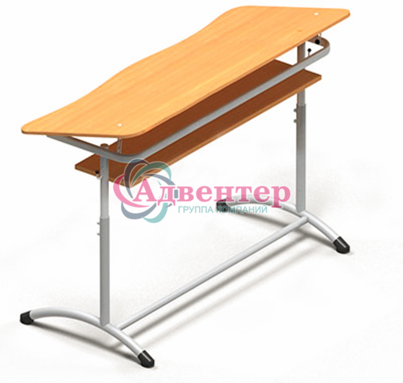 Основа парты - металлокаркас на круглой трубе - две боковые металлические опоры, окрашенный износостойким полимерным покрытием серого цвета с крючком для портфеля, к которым крепится горизонтальная столешница эргономичной формы. Ножки имеют пластиковые заглушки для предотвращения преждевременной порчи напольного покрытия.