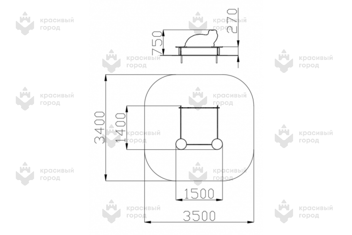 Конструкция стандартная. Это квадратная песочница, в которой предусмотрена пара круглых столиков, на которых можно делать куличики.