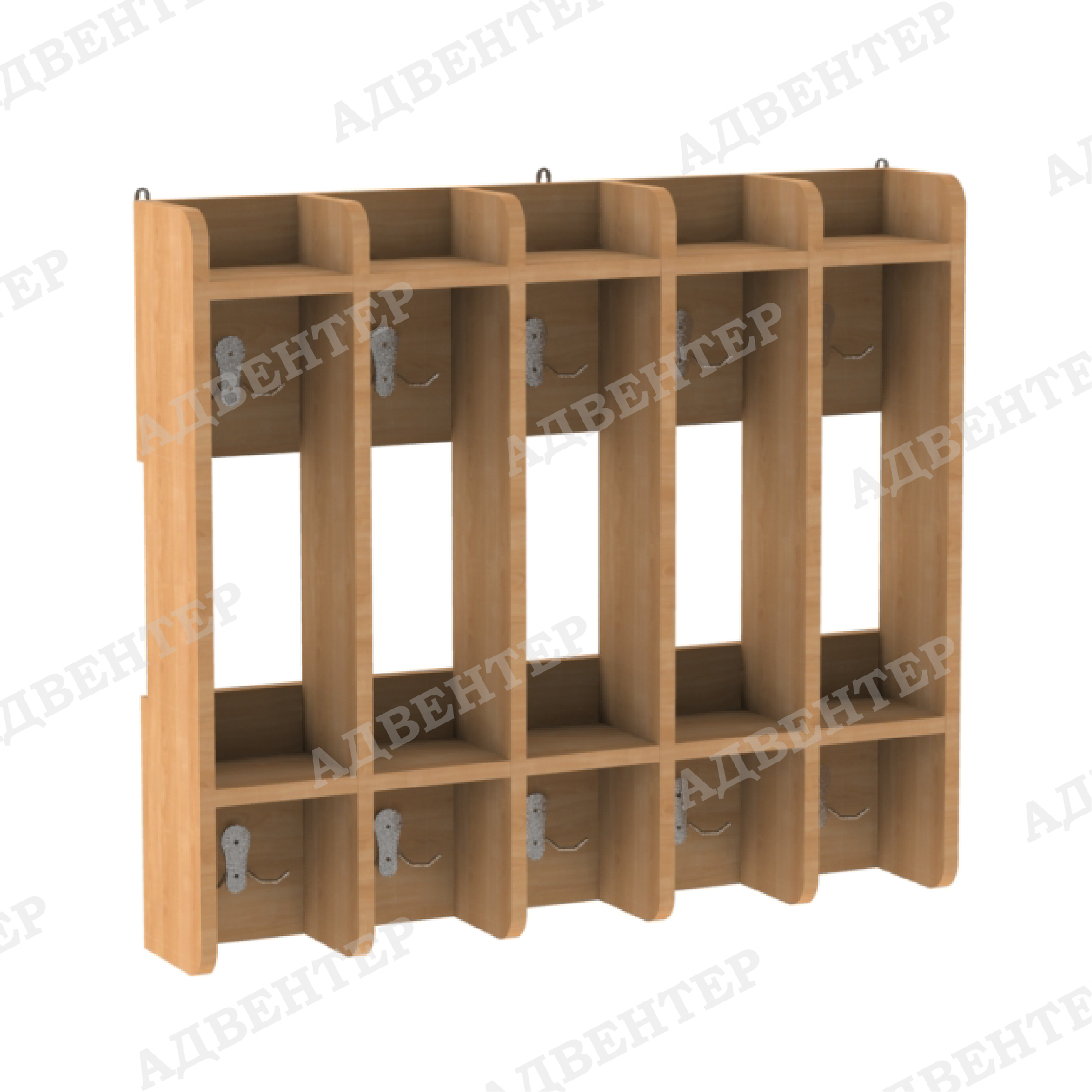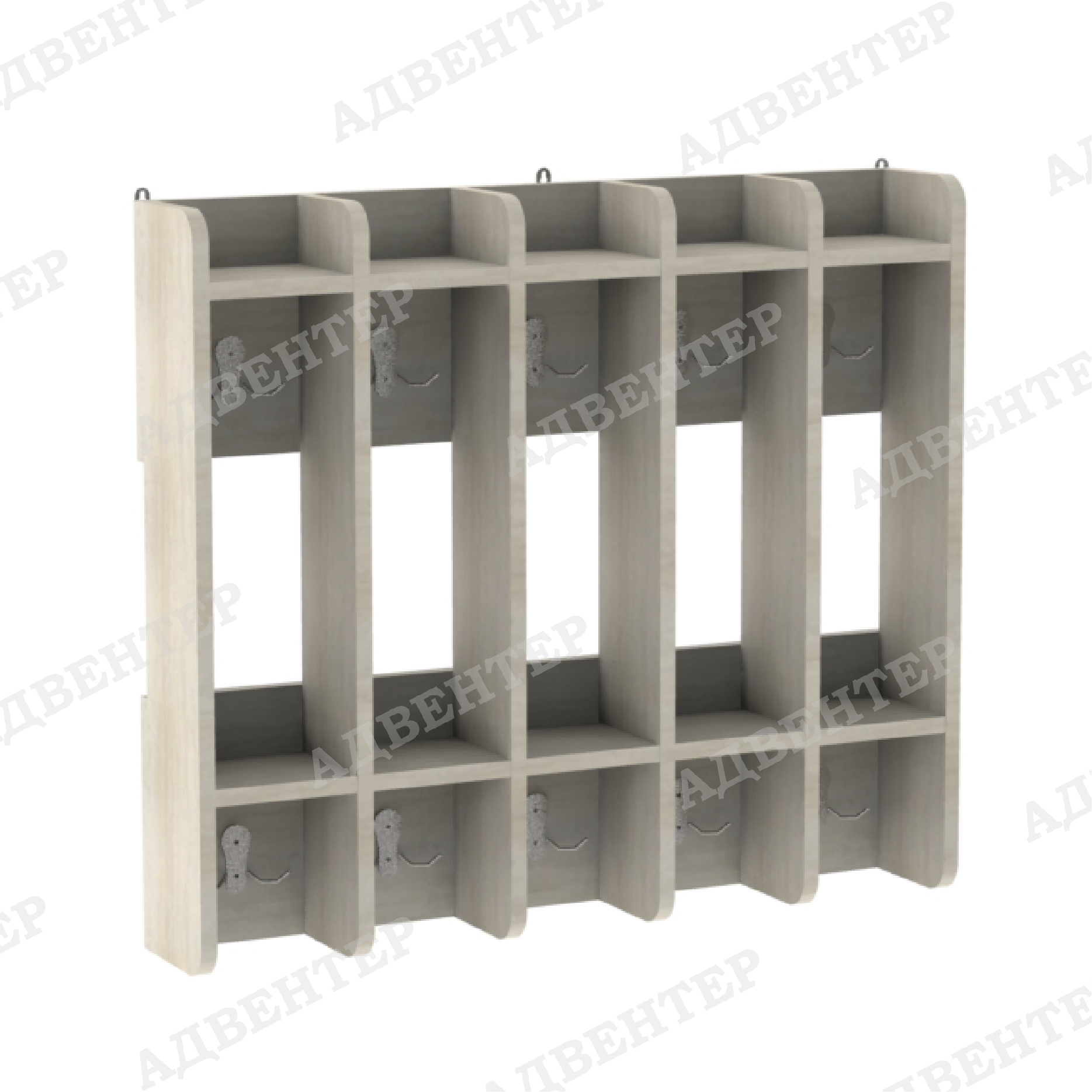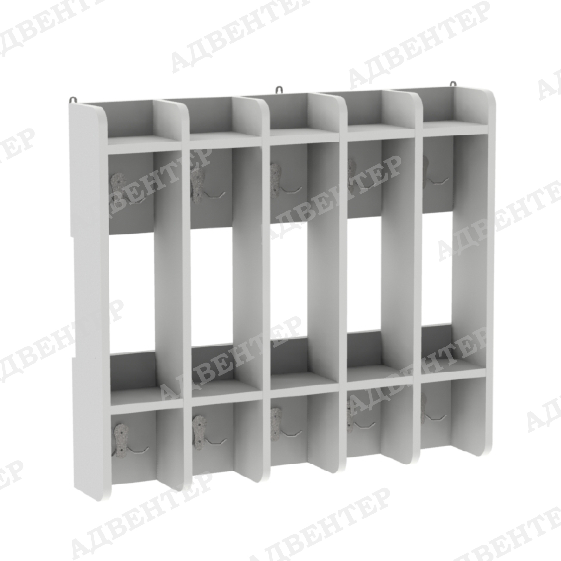 Наша навесная полотенечница имеет размеры 800х140х700 мм и состоит из десяти секций, которые располагаются по две вертикально в одном корпусе. В каждой из секций имеется двухрожковый крючок, на который можно удобно повесить индивидуальные полотенца для детей. Практичный и удобный вариант для туалетной комнаты детского сада.