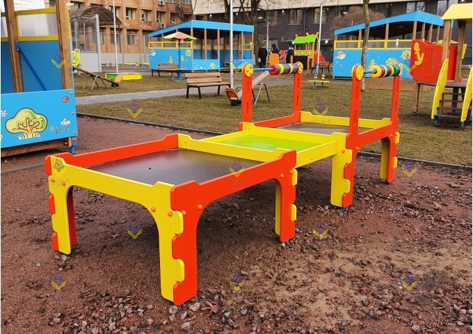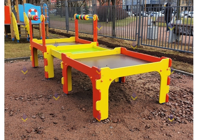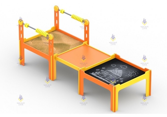 Данный игровой комплекс ориентирован на детей с ограниченными возможностями. Здесь сочетаются как игровые, так и развивающие элементы: песочница, доска для рисования, столик для лепки и счеты. Высота уличного игрового оборудования удобна для детей-инвалидов на колясках. Здесь ребенок сможет играть без посторонней помощи один или с друзьями. Такая площадка будет интересна и обычным малышам, а благодаря красочному дизайну она невольно привлечет внимание детей.