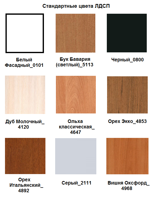 Возможно исполнение в любом цвете (стандартном и фантазийном), указанном на фото-раскладках цветов ЛДСП.