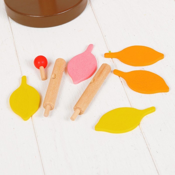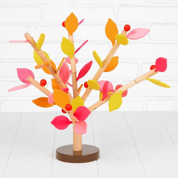 Конструктор «Собери дерево» – развивающий деревянный конструктор, очень увлекательный и интересный. В набор входят элементы, из которых собирается дерево с листочками и фруктами. Все элементы оснащены штырьками, с помощью которых они соединяются со стволом и ветками дерева.