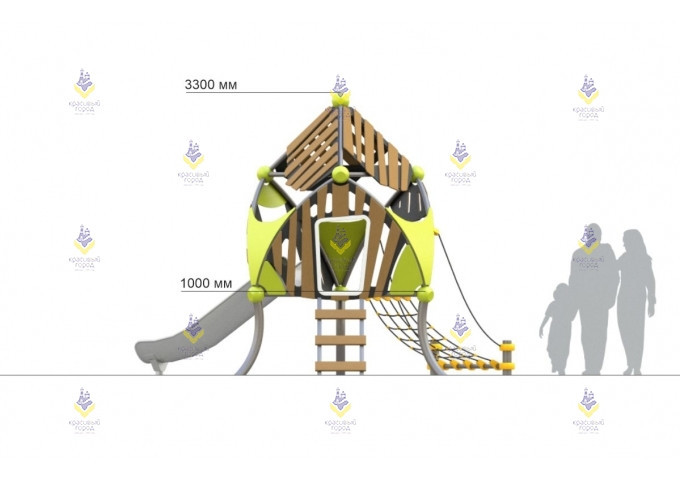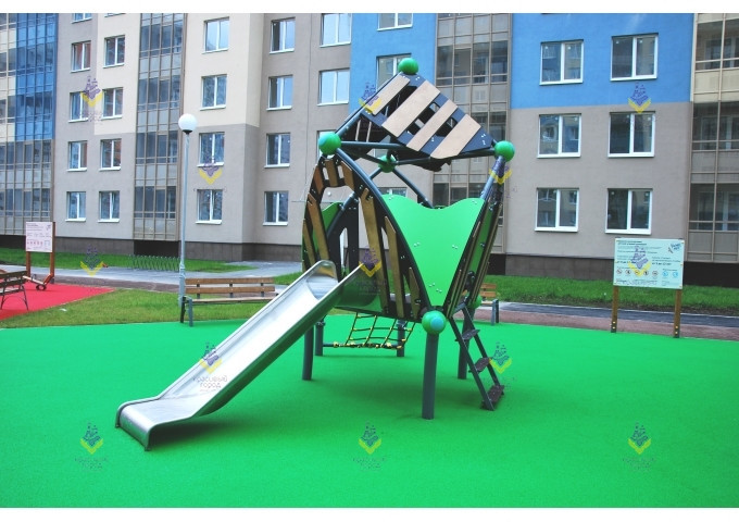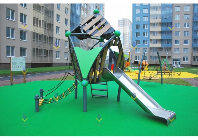 Все элементы площадки полностью безопасны. Комплекс изготовлен с применением HDPE-пластика, нержавеющей стали и прочного армированного каната. Горка имеет глубокий желоб, а на верхней площадке предусмотрены высокие ограждения. Оборудование ориентировано на школьников в возрасте от 5 до 12 лет. Это хороший вариант в качестве дополнения к спортивно-игровой зоне во дворе многоквартирного дома, на территории школы, торгово-развлекательного центра, парка.