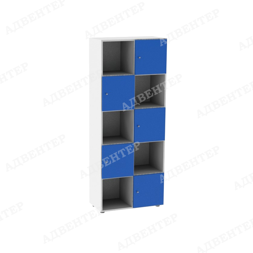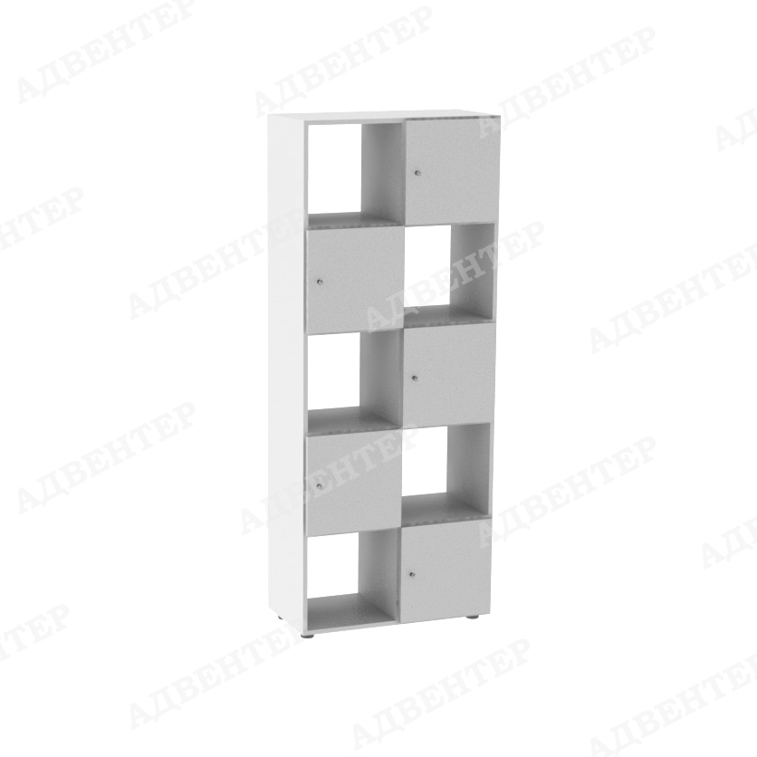 Стеллаж имеет 5 ячеек, которые удобно использовать для хранения демонстрационных пособий, а так же 5 закрытых полок, расположенных в шахматном порядке, помогающих скрыть особо хрупкие вещи или защитить важные документы от пыли.